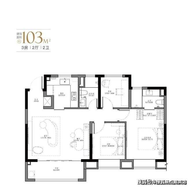 产品:103㎡、107㎡的三房两厅两卫及123㎡、129㎡的四房两厅两卫