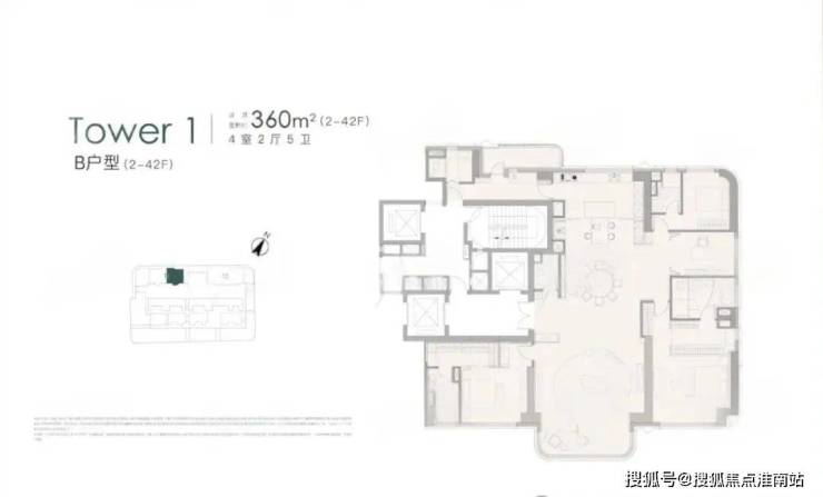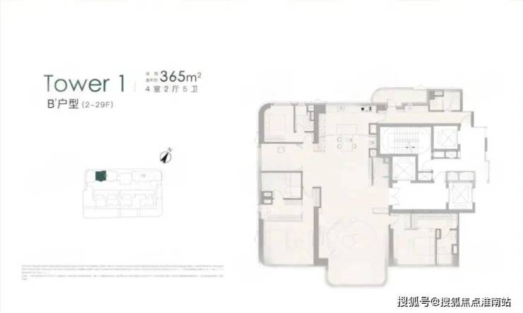首开主力面积约270、286、338平米的四房,还有少量600多的云端大宅,实际层高44层。