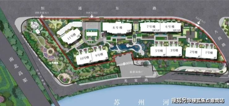 「龙盛福新里」距离苏州河直线距离约80米,前方无遮挡,建设之初就抬高了90公分,增加了观景楼层,也很好的保护了地区的私密性。