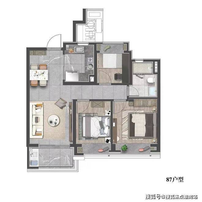 户型方正通透,全明格局,三开间朝南!麻雀虽小五脏俱全,虽然面积不大,但是好户型的优点一个也不少!