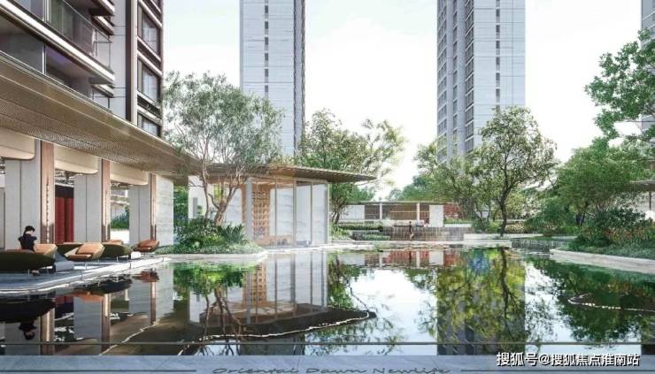 风雨回廊:沿中央泳池四周而建,将超级入口、架空层、宅间花园等节点串联,诠释一镜到底的生活理想;