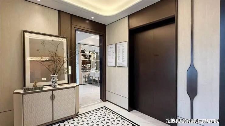 全明带飘窗的电梯厅,既为归家赋予了仪式感,又能改造成实用双玄关,将童车、存放快递、消杀换鞋等在入户门外完成,开门进家,减轻室内玄关的功能负担,更显开阔清爽。