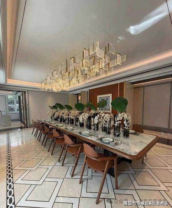 上海浦东绿宝园·翡梵售楼处电话☎:400-8818-994(预约看房热线)ART DECO风格的黑白拼花大理石地面与大面积镜面墙设计,延展了入户空间的视觉深度。如璀璨星环水晶环形吊灯,增添了归家的仪式感。奢华的玉石背景墙与法式经典家具相映生辉,在静谧与华美之间,彰显翡梵空间的非凡气度。餐厅与西厨之间,八扇手工定制的电动旋转立门,宛如天工造物般的巧思令人惊艳。每一扇门均镶嵌意大利SICIS内含铂金的奢华马赛克,天然贝壳面板在灯光下折射出璀璨光芒。门扇的开合间,实现了空间的灵动转换,私密与开放的完美平衡,为社交与生活增添无限乐趣。每一处细节都经过大师级的匠心打磨,呈现出一场视觉与感官的极致盛宴