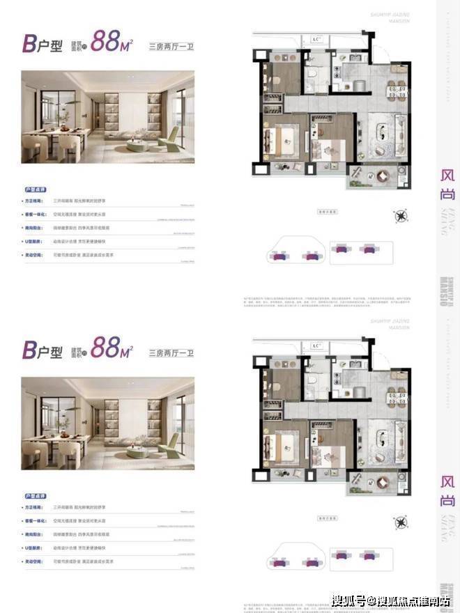 产品设计精巧:主力户型为建面约88-99㎡的精装三房,以“小户型、多功能、高品质”为设计理念。其中,88㎡户型做到三开间朝南,两间卧室朝南,全屋飘窗设计增加使用面积;99㎡户型为双卫设计,主卧是套房配置,满足家庭生活需求。精装方面更是配置了日立中央空调、地暖、新风三大健康系统,还配备了油烟机、燃气灶、橱柜、洗碗机四件套,精装标准较高。深嘉上府售楼处电话:400-9659-259