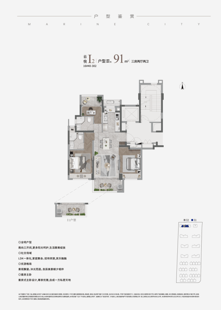 建面约91㎡的三房采用经典的飞机户型,南北通透,主卧带飘窗,晾衣服都能晒到太阳,适合当下年轻上班族对阳光和悦己体验的生活需求;