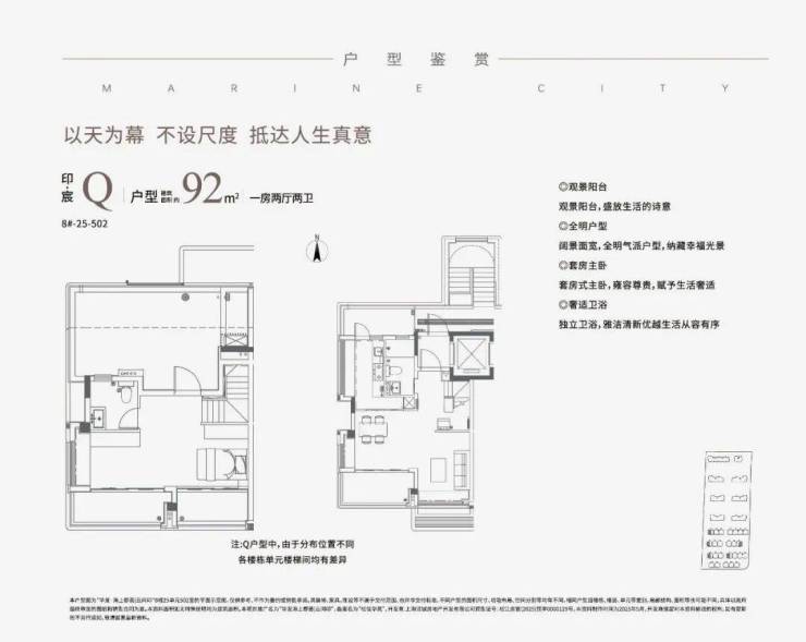 除了高层户型,项目还有建面约90-136㎡叠墅户型。叠加的优点非常多,相较于大平层,叠加区域分割清晰,会客区、休息区等可以明显区分开,互不干扰。同时,居住的私密性强,给到墅居的空间感,得房率相较于高层产品也更高。作为居住业态的高阶形态,舒适度和仪式感也更胜一筹!
