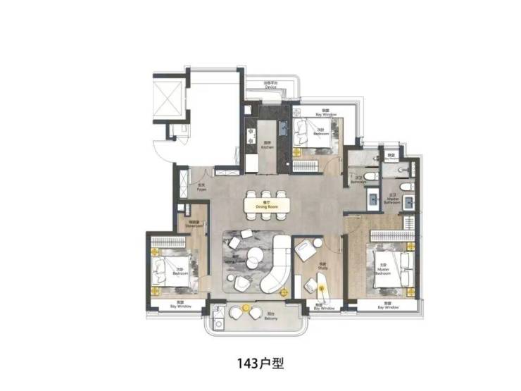 除此之外,翎翠滨江还有建面约143㎡4房2.5卫产品: