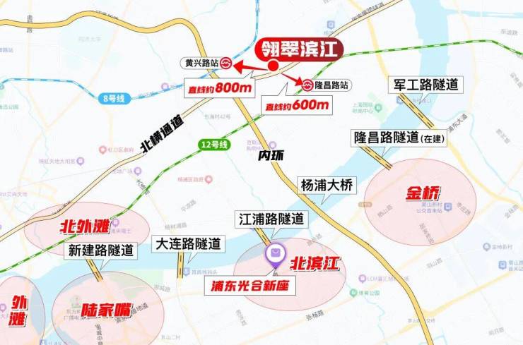 很多人以为滨江沿岸那些13万+的新房通勤优势独一档,却不知道,翎翠滨江才是杨浦真正的通勤 “黄金枢纽”。