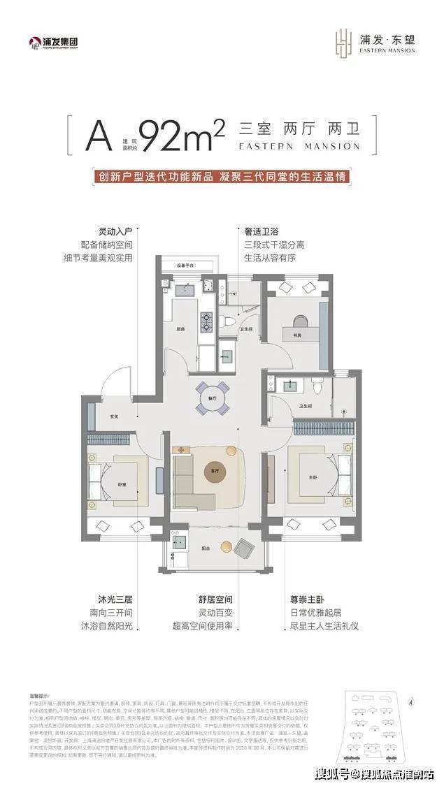 1、建面约92㎡3房2卫