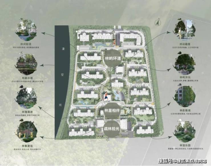 疏林时光,自然都市风尚花园丨林里相伴,社区邻里互动中心丨林庭水境,社交生活休闲会客丨林屿环道,社区健康生活跑道