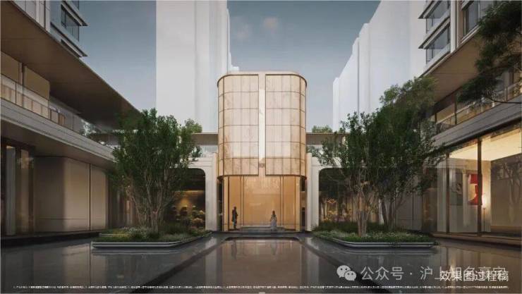 建筑与美学:融贯东方审美与现代简约的立面美学,立面采用精致铝线条(局部涂料)与现代质感玻璃打造,勾勒优雅轻盈的城市封面