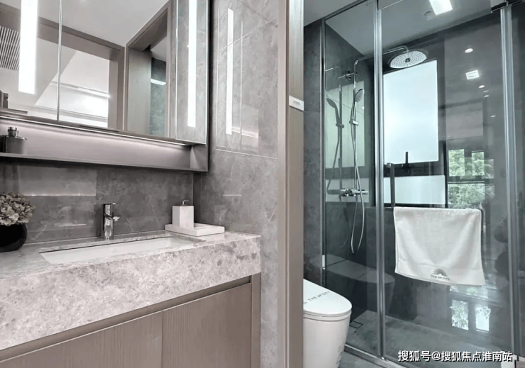 项目在个性化定制方面,也为业主准备了诸多惊喜,包括电热毛巾架、岛台轨道插座等。