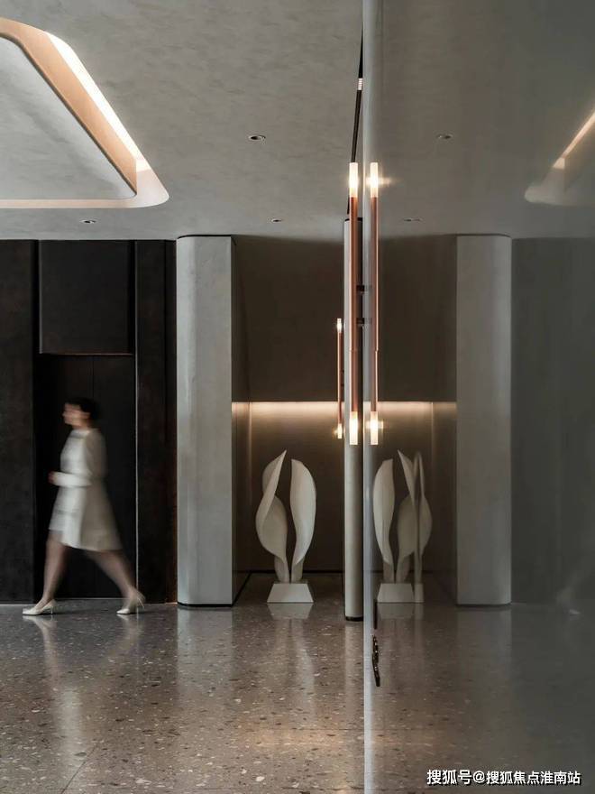 项目的大门归心庭采用云朵拉灰+铝板+铝格栅的搭配,低调又大气;