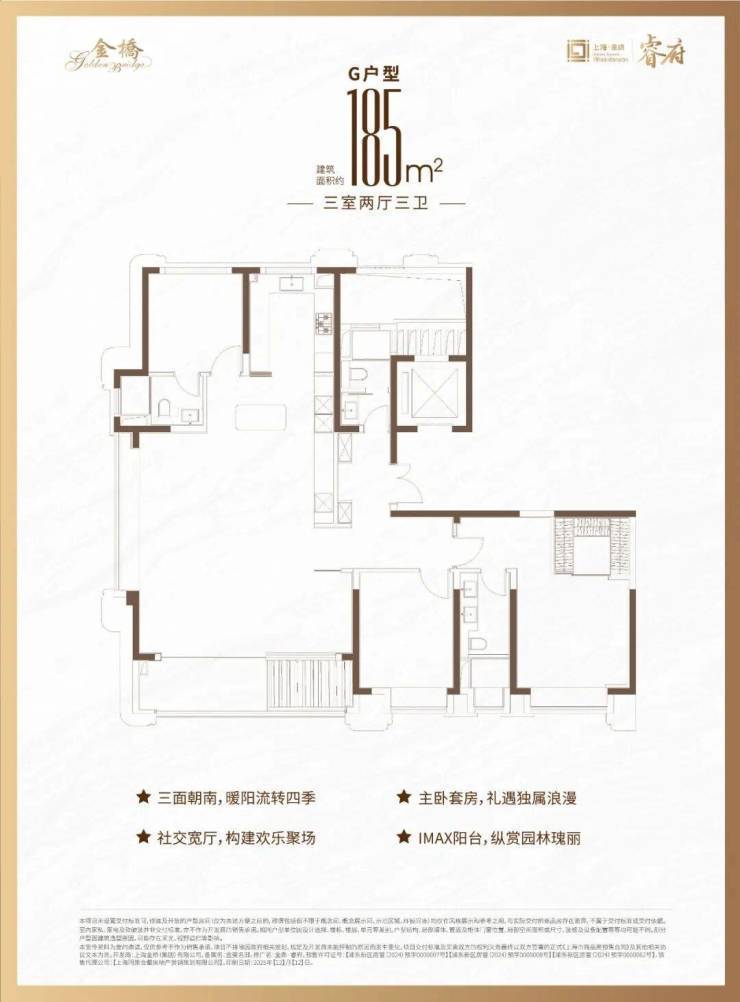 约165–185㎡四房:高端改善,主卧套房+双卫,空间尺度优越