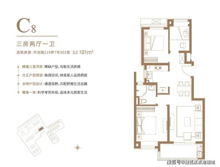 户型设计灵动,目前开放了104㎡3房2厅2卫和103㎡3房2厅2卫样板间,可谓是各有看点: