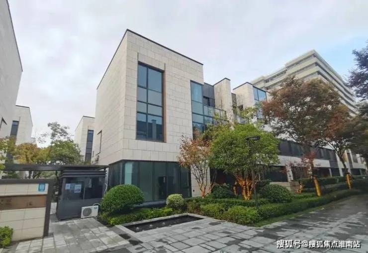 办公联排现代简约风格(地上三层 地下两层)外立面为全干挂石材——葡萄牙米黄石材。