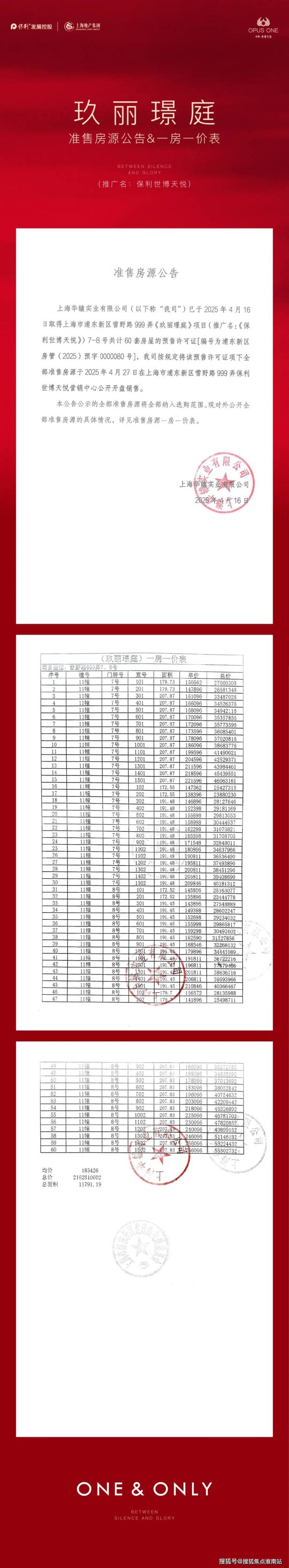 1、项目推广名为“保利·世博天悦”,地名核准名/备案名为“玖丽璟庭”,开发公司为:“上海华辕实业有限公司”;预售证号:浦东新区房管(2025)预字0000015号;2、本资料为要约邀请,不作为要约或承诺;3、相关宣传内容不排除因政府相关规划、规定及出卖人分期规划、未能控制等原因而发生变化;4、买卖双方的权利义务以双方签订的商品房买卖合同及其补充协议、附件等书面文件为准;5、本宣传材料所涉及户型仅供示意参考,具体以政府部门最终审定的图纸和销售合同为准,本资料所涉及面积皆为预估面积,相同户型单位因楼栋、楼层、单元等差异,局部结构、形式、面积、装饰等可能有所不同,且预估面积与实际面积可能存在差异,面积最终以房管局测绘为准。户型图中装修、家具、电器等设备仅为示意,不属于交付内容和交付标准,实际部品的选型和房间空间尺寸根据户型情况,略有差异,以现场实际为准;6、本宣传资料中涉及的价格、折扣、付款方式等信息,因销售时间、户型楼栋、楼层、方位等不同有所差异,以双方签订的商品房买卖合同及其补充协议、附件等书面文件为准;7、本资料所发布的内容为2025年2月的信息,敬请留意最新资料。