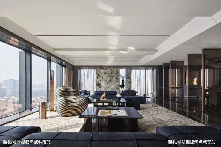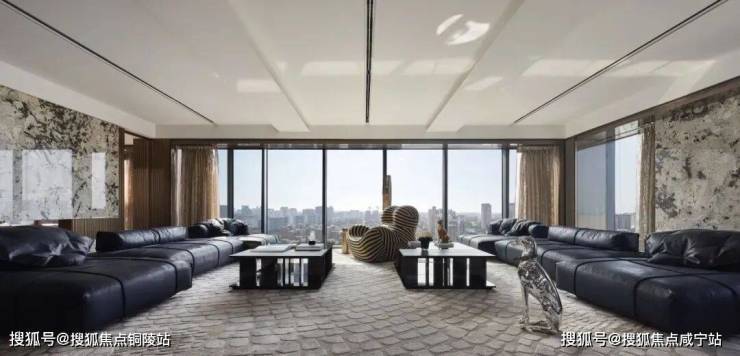 简洁有力的皮革家具充分彰显了空间的张力,金属色豹型装置如空间中灵动的一笔,增加了艺术性释放了松弛感。
