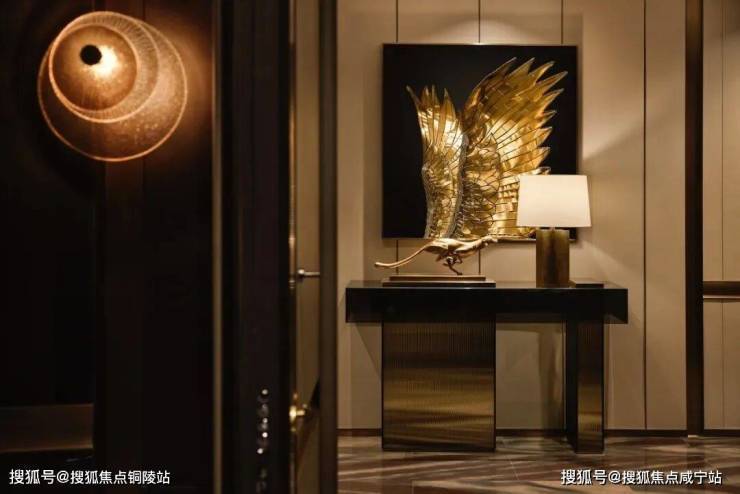 人的内心经由线性与秩序得到转化性的叙述,入口处金属秩序感的家具与挂画相得益彰,古北中央公园壹号公馆以家为画,展示对城市生活的独特感悟。