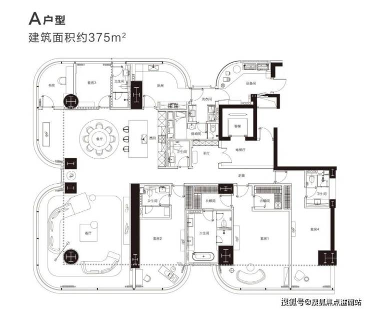 主力户型:375㎡(赠送100㎡,得房率93%)