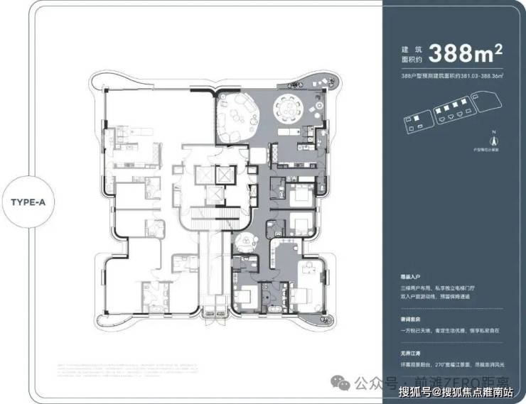 项目有11栋可售住宅楼栋,共计约378套可售高层住宅,共有4种主力户型,包括建面约188-250-278-388㎡大平层。