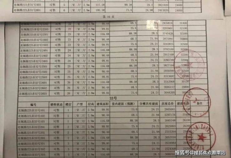 项目一房一价表