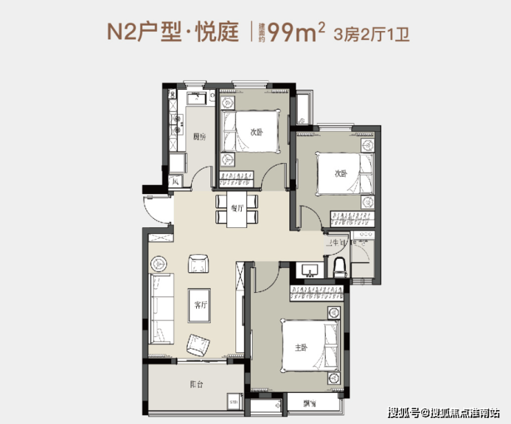 3房2厅1卫99㎡户型图