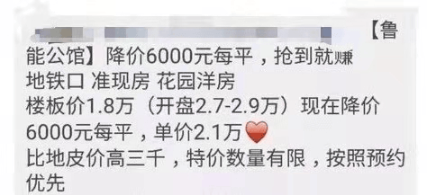 2016年项目首次开盘,均价在27000元/㎡~29000元/㎡,但是去化只有个位数,很快就直接降价6000元/㎡,开创了打骨折流派。