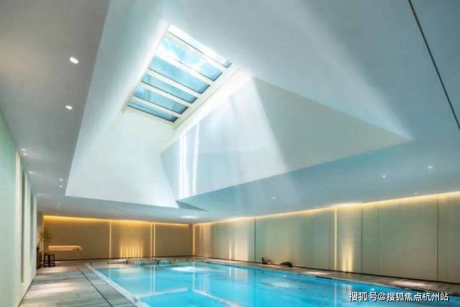 室内恒温泳池一端设计了很有古典气息的奢石涌泉,形制复刻自古罗马浴场。泳池的上方设计了珍贵的自然采光,阳光投入碧波,会给你带来「天光水影共徘徊」的美好感受。