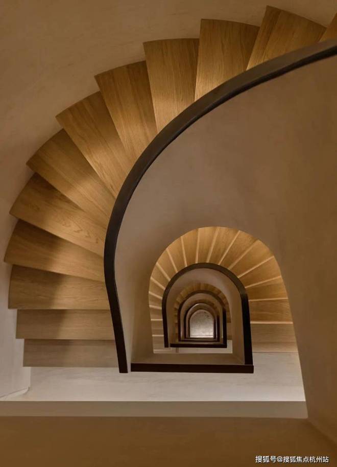 他们在庭院中引入了一条水系,不是平铺在地面上,而是让水流在墙面上垂直流淌。它出现在地下一层的旋梯上,地下二层的庭院中,汇聚到了地下三层的会所。