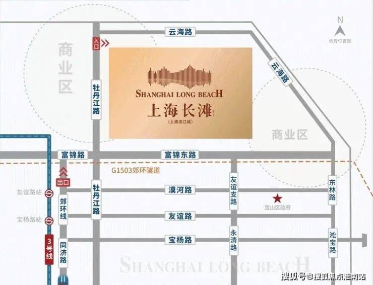 上海长滩位于淞宝板块, 这里是宝山主城区,最大优势是一线滨江资源。
