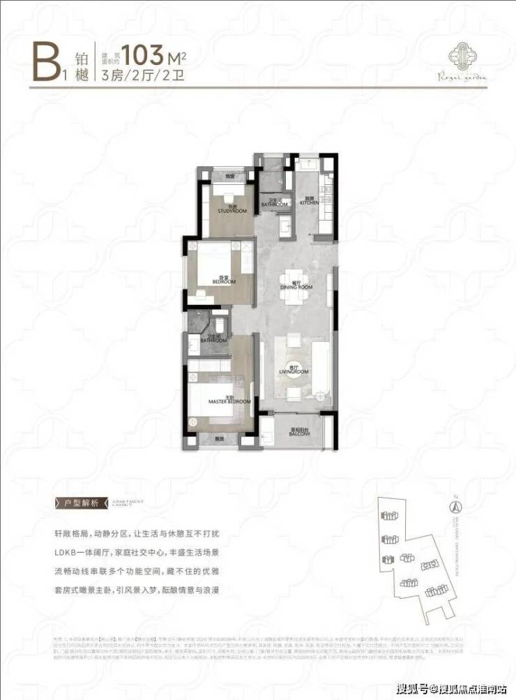 全明卫生间干湿分区、通风防潮。这套104㎡的3房2厅2卫,南北通透,户型方正,合理规划功能布局,追求品质人群优先好选择。