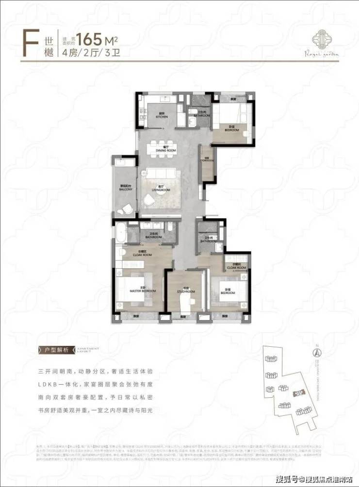 165㎡面积段户型作为改善四房的首选,南向三开间进一步扩大、LDK一体化、多重飘窗设计、双套房等等设计都为生活延展出更多生活的可能。让归家成为一种享受!