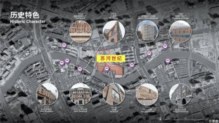 项目地处600亿+上海最大城市文保赋新石库门商业街区,尽揽河岸约50万平方米历史保护建筑。项目东侧为著名历史保护建筑四行仓库,同时周边有OCAT当代艺术馆、UCCA尤伦斯美术馆等,上海城市简史的缩影。