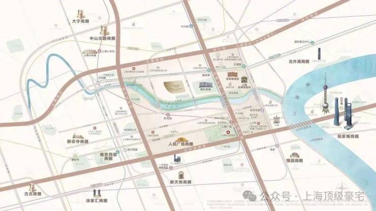 商业资源:近在咫尺的市区成熟生活配套,约百万方摩登商业环伺。大悦城、人民广场、南京东路商圈均在直线距离一公里范围内。