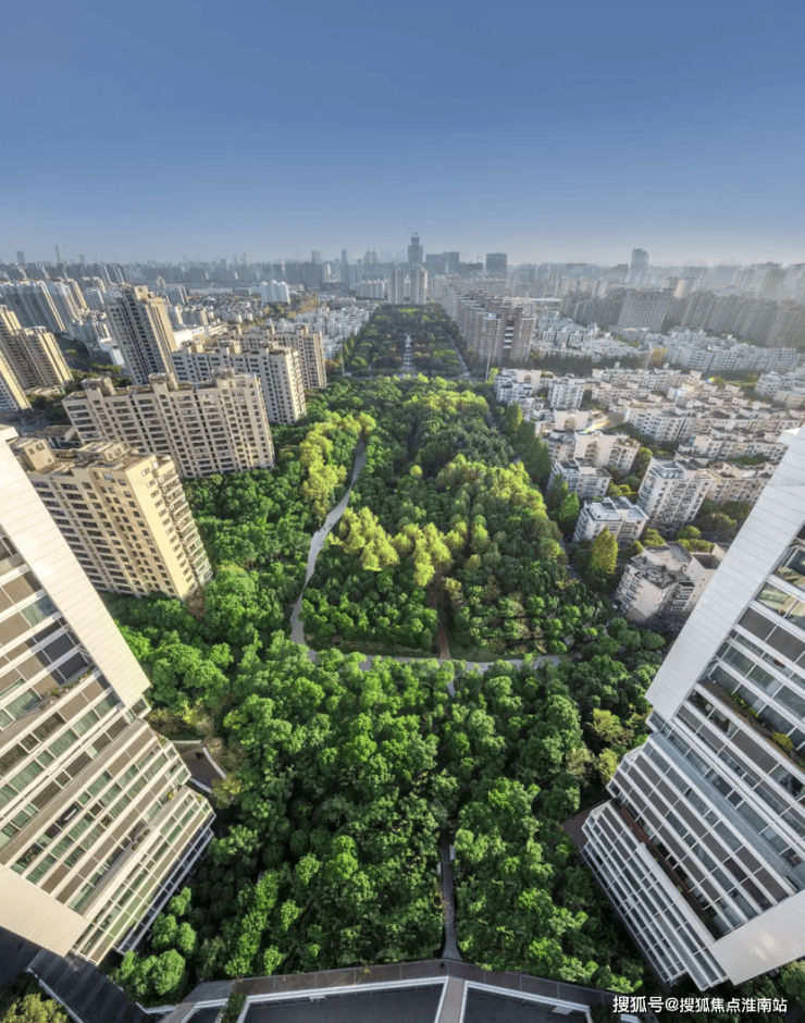 整个「中鹰黑森林」用11000余棵成年乔木构成了约12w㎡森林生态,连同万里板块本身约10w㎡中央绿地,共组一条神似纽约中央公园的「超级绿轴」。