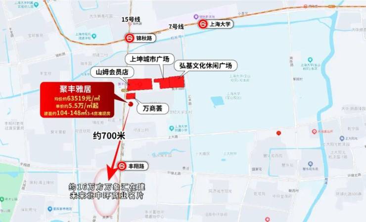 从“当下宜居”看,项目核心优势已然成型:紧邻7号线、15号线双轨交,通勤便捷度拉满;出门即享聚丰园路成熟生活圈,商超、餐饮等配套一应俱全;同时背靠上海大学,高知人群聚集的人文氛围,让居住质感再上一层。