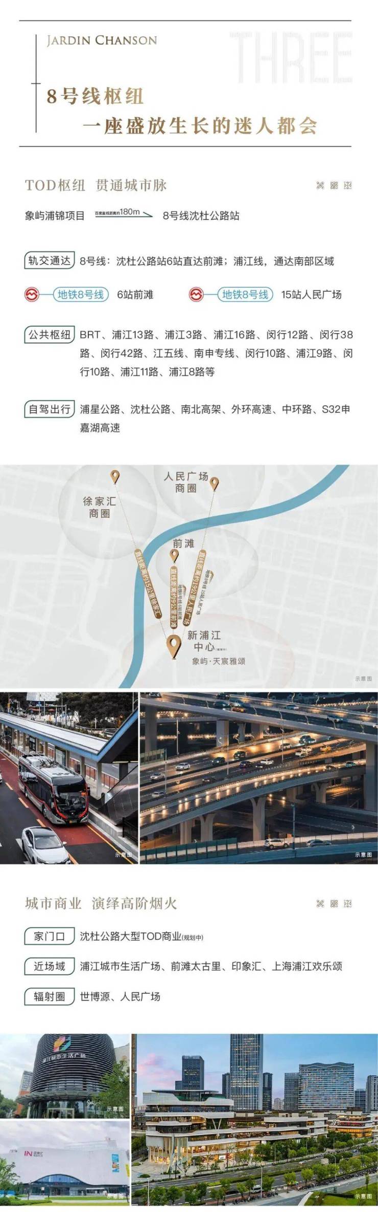 位置:外环外,前滩南浦江板块核心,8号线沈杜公路站约180米(步行3分钟),近浦星公路、S32申嘉湖高速