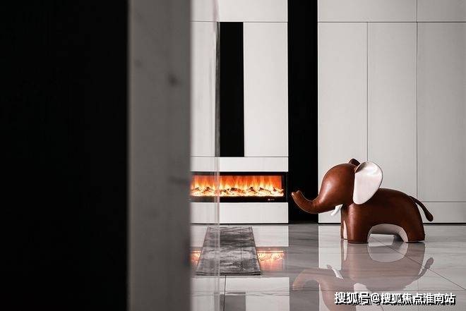 黑白配色的电视背景墙将壁炉纳入这块空间,使得本身冷色调的家瞬间温暖而治愈。