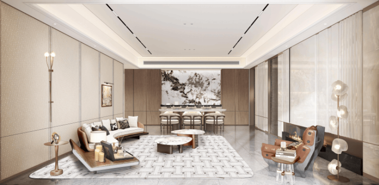 1、精装高标准,据悉采用精雕铝板装甲入户门、耶鲁智能门锁、博世内嵌冰箱、玫瑰岛淋浴房、大金中央空调及地暖、格力空气能全屋循环热水系统、唯宝台盆、汉斯格雅龙头等。