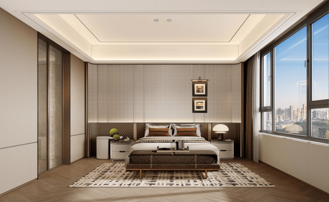 主卧为独立超级套房,带双台盆卫浴与步入式衣帽间