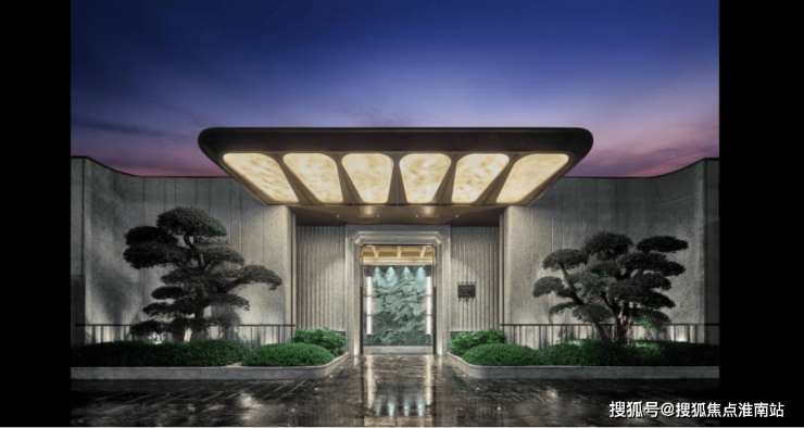 低密墅区为奢阔场景营造提供了先天优势。从大门开始,保利·外滩序的豪宅仪式感就扑面而来。据悉,在别墅组团单独设计了专属入户,给予业主“独一份”的尊崇感。入户两侧有两棵价值不菲的红花继木,春季变红,寓意“吉祥如意”。材质上也无不透露着贵气,立面是白玫瑰奢石,地面铺装的是慕尼黑大理石,顶部还特别运用了透光云石做了一个灯光设计,到了夜晚,灯光会穿透光云石洒向地面,很是惊艳。