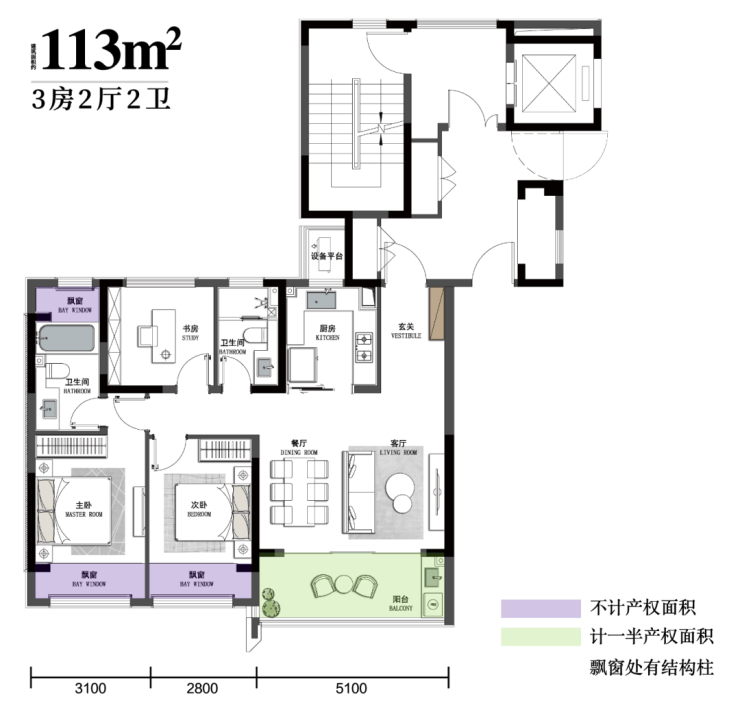 还有建面约113㎡高层,动静分离,麻雀虽小,改善要素全部具备,三开间朝南,南向大主套设计,首付6位数就能直接上车。
