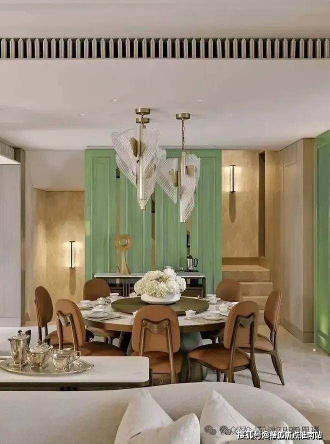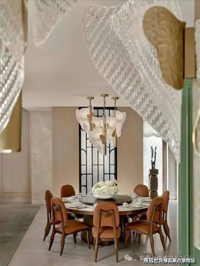餐厅的设计巧妙融合了老上海的经典元素,圆形餐桌和橘色皮质餐椅在色彩上既现代又充满活力,顶部的水晶吊灯造型灵感来自上海市花“玉兰花”,既增添了空间的华丽感,又巧妙地融入了上海的地域特色。华润士林润园售楼处电话400-891-9910如有问题欢迎来电咨询,来电即可享受买房优惠!
