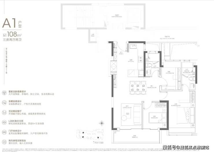108㎡的入门级三房,起步门槛相比润府提高不少。