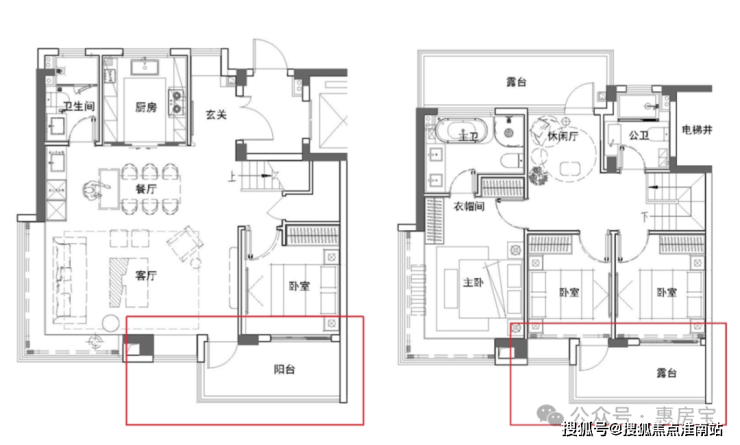 下图为边套户型过程稿,红框线范围内可能会优化,一是客厅飘窗位置可能会优化为阳合,变为南向双阳台;是六层南白次卧飘窗位置优化为露台,两个次的露合连通!
