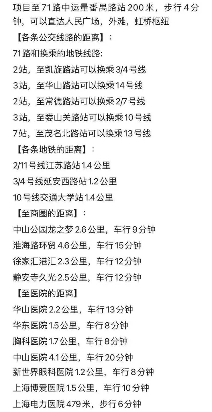 医疗:附近有华山医院、中山医院、上海交通大学附属瑞金医院、同仁医院等三甲医院,医疗资源优质