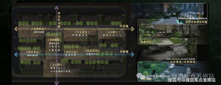 以昆山《玉山雅集图》为蓝本,师法苏州留园,“三轴一环两厅一庭五院”打造“可游、可玩、可赏、可聚”的沉漫式东方园林。