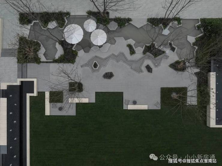 步入社区,首入眼帘的是约6米高水幕的下沉式山水庭院,与周围建筑融为一体,将自然与松弛感带给社区。
