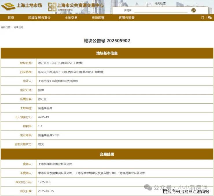 截图来源上海土地市场官网